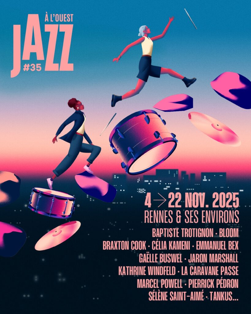 Depuis plus de 30 ans, le Festival Jazz à l’Ouest propose un voyage dans l’univers du jazz, mixant les grands noms français et internationaux avec des nouveaux talents locaux. La 35ème édition a lieu à Rennes et dans des communes de la métropole et d’Ille-et-Vilaine, du 4 au 22 novembre 2025.