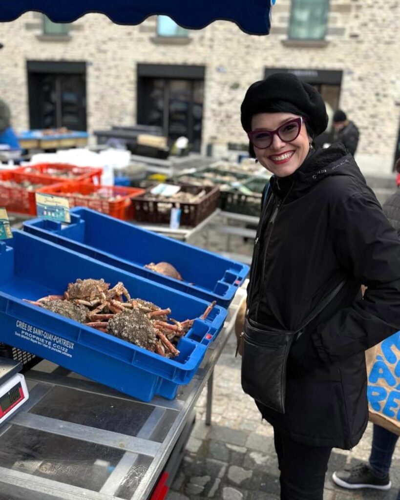 J’adore l’ambiance qui règne dans ce marché très convivial, très coloré, très vivant. Les gens se parlent, flânent, échangent et parlent cuisine. En France c’est incroyable, on parle tout le temps de cuisine et de bons produits. C’est phénoménal la richesse des étals, les poissons qui viennent directement des pêcheurs, les légumes de toutes sortes, et les volailles en direct des fermes.