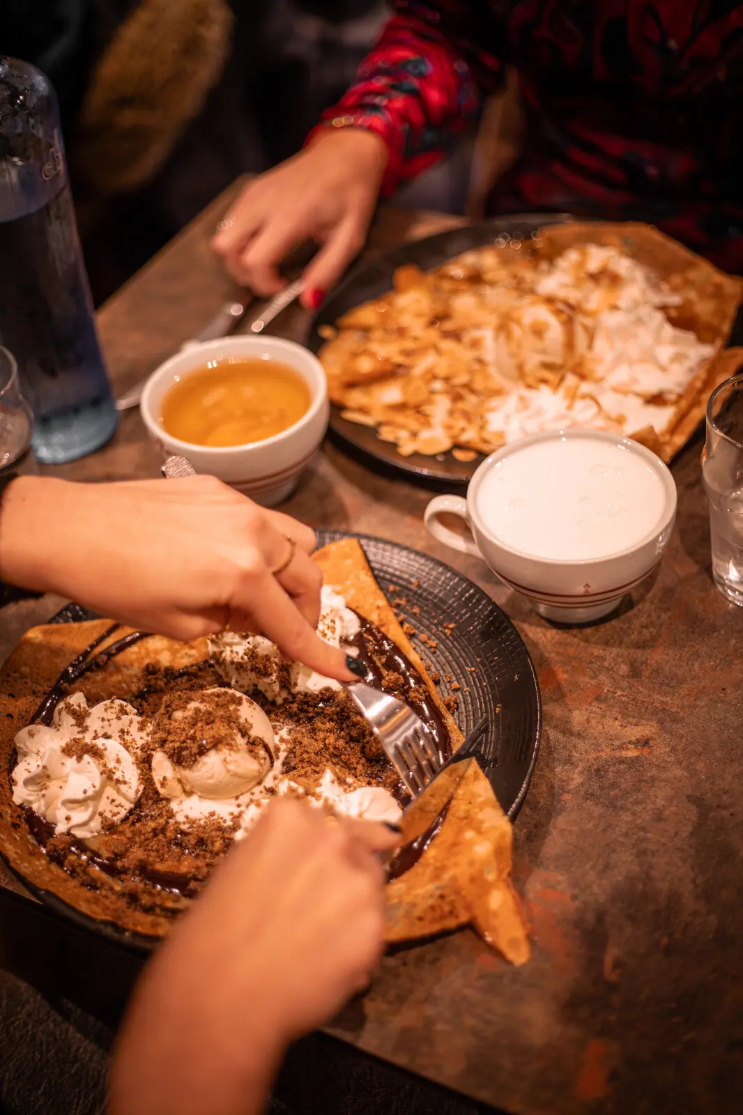 브르타뉴에서 반드시 맛봐야 할 대표적인 향토 음식은 메밀로 만든 짭짤한 갈레트와 밀가루로 만든 달콤한 크레프입니다. 렌에는 이를 맛볼 수 있는 크레페 전문점이 약 40곳에 달하며, 전통적인 분위기의 저렴한 레스토랑도 많아 온 가족이 함께 즐기기에 좋습니다.