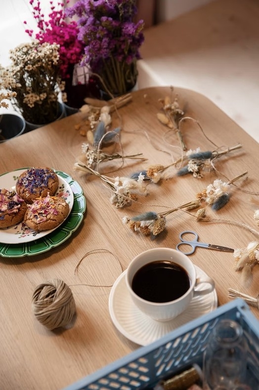 Chez Saison, c'est vous les fleuristes ! Dans cet atelier café singulier, vous pouvez en effet réaliser la création en fleurs séchées de votre choix avec les fleurs proposées, tout en dégustant un bon goûter fleuri. Couronne, guirlande, cloche ou tambour : à vous de choisir votre modèle ! Les ateliers durent deux heures et coûte entre 38 et 80€ (selon votre création). Afin de rendre l’atelier encore plus convivial, Saison vous propose une gamme de boissons caféinées ou non ainsi que des pâtisseries maison fleuries.