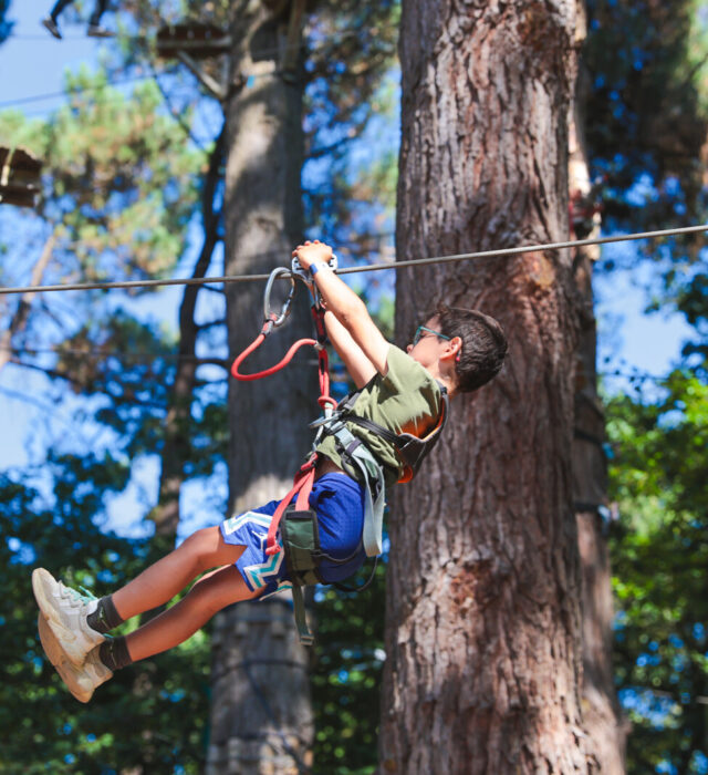 Acrobates en herbe ou aventuriers, évoluez d’arbres en arbres au fil des 17 parcours acrobatiques et des 150 ateliers, perchés entre 1 et 17m de haut. Des difficultés croissantes et 100% sécurisées grâce à la ligne de vie continue pour tous, vivez des sensations fortes en famille ou entre amis.