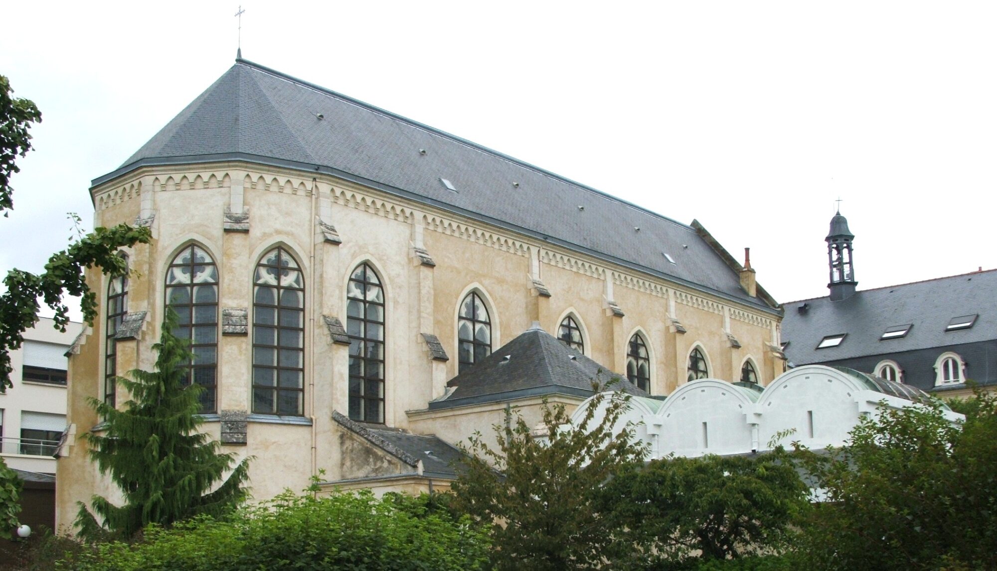 Si les bâtiments les plus anciens de la clinique Saint-Hélier remontent au 18e siècle, à l'époque du couvent des "Dames Budes", sa chapelle n'a été construite qu'en 1865, par le chanoine Marie-Joseph Brune. C'est un bel exemple d'architecture néogothique, dessiné par un prélat, directeur du grand séminaire de Rennes et cofondateur de la Société d'Histoire et d'Archéologie d'Ille-et-Vilaine. A l'intérieur, le chanoine a mis en valeur des oeuvres commandées par celles que l'on nommait les "Dames Budes".