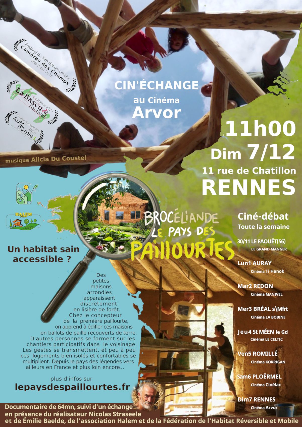 Ciné-échange sur l'habitat écologique avec Servane BZH de l'association HALEM et de la Fédération de l'Habitat Réversible et Mobile, et Nicolas Straseele réalisateur du documentaire Brocéliande le Pays des Paillourtes.