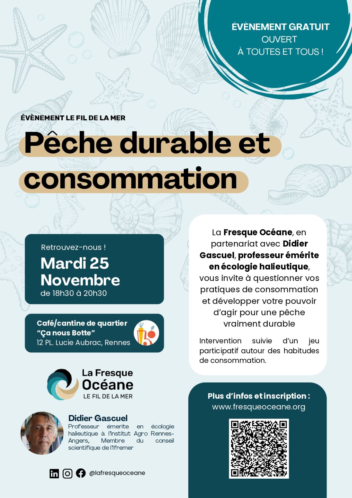 Conférence-atelier pour explorer notre pouvoir d'agir pour une pêche durable et une consommation responsable des produits de la mer. Un événement ludique et convivial !