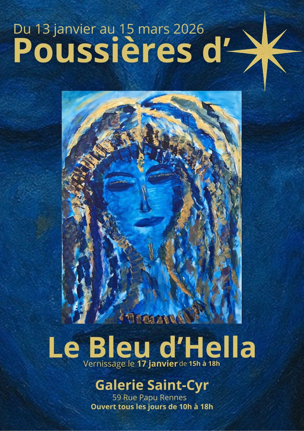 Au cœur de Bourg-l’Évêque à Rennes, Hella Louzir vous invite à découvrir sa nouvelle exposition : « Poussières d'étoiles », dans le cloitre de la galerie Saint-Cyr. Son œuvre est un mouvement profondément engagé dans une vision avant-gardiste de l’art, où l’esthétique se mêle à l’écologie et au spirituel. Son intention est claire : éveiller les consciences et honorer la connexion de l’Homme avec l’esprit de la Nature. Une sacrée alchimie !