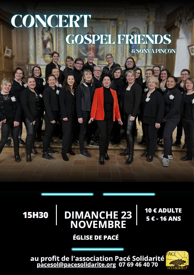 Concert gospel le dimanche 23 novembre à 15h30, avec les Gospel Friends. La cheffe de choeur Sonya Pinçon, est l'une des plus célèbres voix de jazz, de soul et de gospel en France depuis une vingtaine d'années.