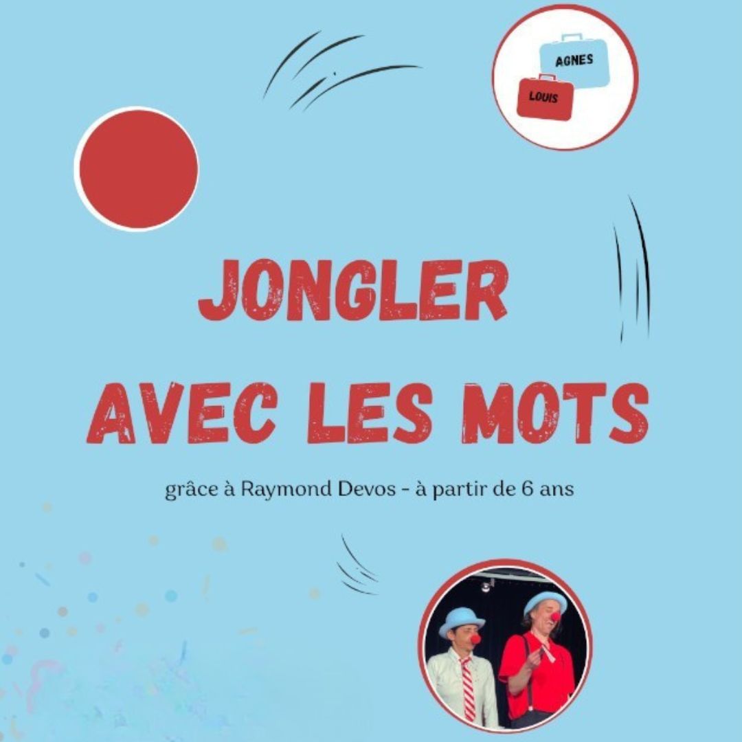 Spectacle jeune public à partir de 6 ans, Jongler avec les mots, c'est le pari d’Agnès et Louis qui parcourent les routes accompagné,es de leurs valises, pour vous faire découvrir l’univers de Raymond Devos. En entrant dans la salle vous les verrez mettre la scène en place, se maquiller, enfiler les costumes de scènes et les accessoires.