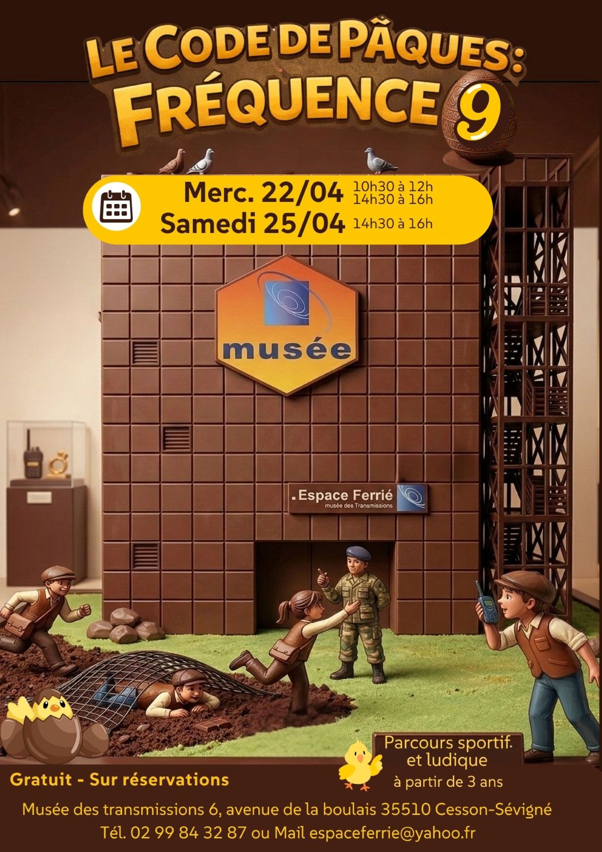 Flash info : signal brouillé à l'espace Ferrié ! Alerte générale au Musée des Transmissions ! Un mystérieux brouillage empêche la diffusion du signal de Pâques. Nous recherchons de jeunes agents pour une mission de sauvetage technologique de haute importance : Le code de Pâques - Fréquence 9.