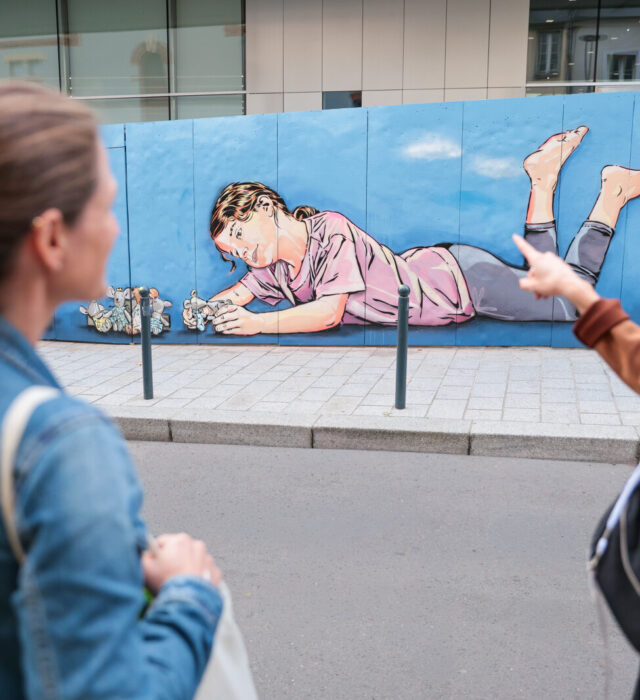 Laissez-vous guider dans un tour de la scène street art rennaise, à la découverte des murs investis, en contraste ou en harmonie avec l’environnement urbain. Graffitis, collages ou fresque murales, découvrez le foisonnement créatif de Rennes !