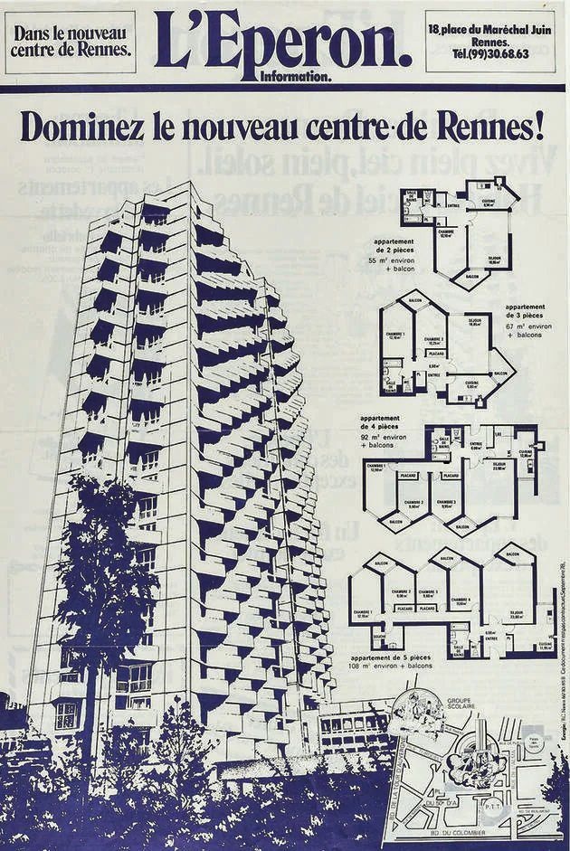 Avec une hauteur de 95m, l'immeuble l'Epéron, construit suivant les plans de l'architecte Louis Arretche, est le second plus haut immeuble de Rennes. Il fête cette année ses 50 ans, l'occasion d'en faire le tour et de la traverser, en évoquant le quartier qui sortait alors de terre, le Colombier.