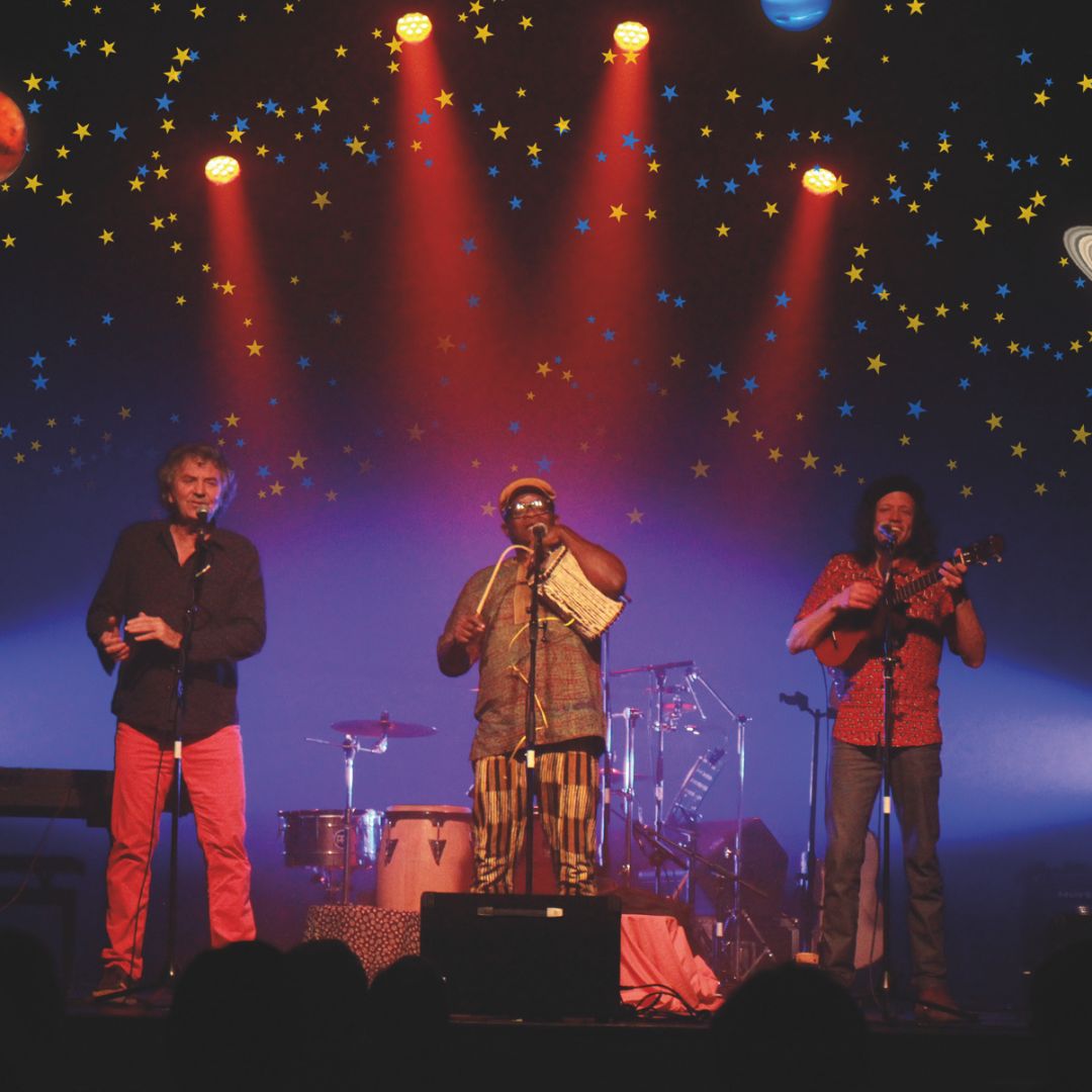 Un trio de musiciens reliés à leurs racines nous emmène dans une aventure musicale où se mélangent chansons, rythmes afro-latinos et transe africaine. Ils nous chantent des histoires d’enfance, de fêtes et de confiance, et interrogent avec humour et tendresse notre humanité, notre lien à la nature et aux éléments.