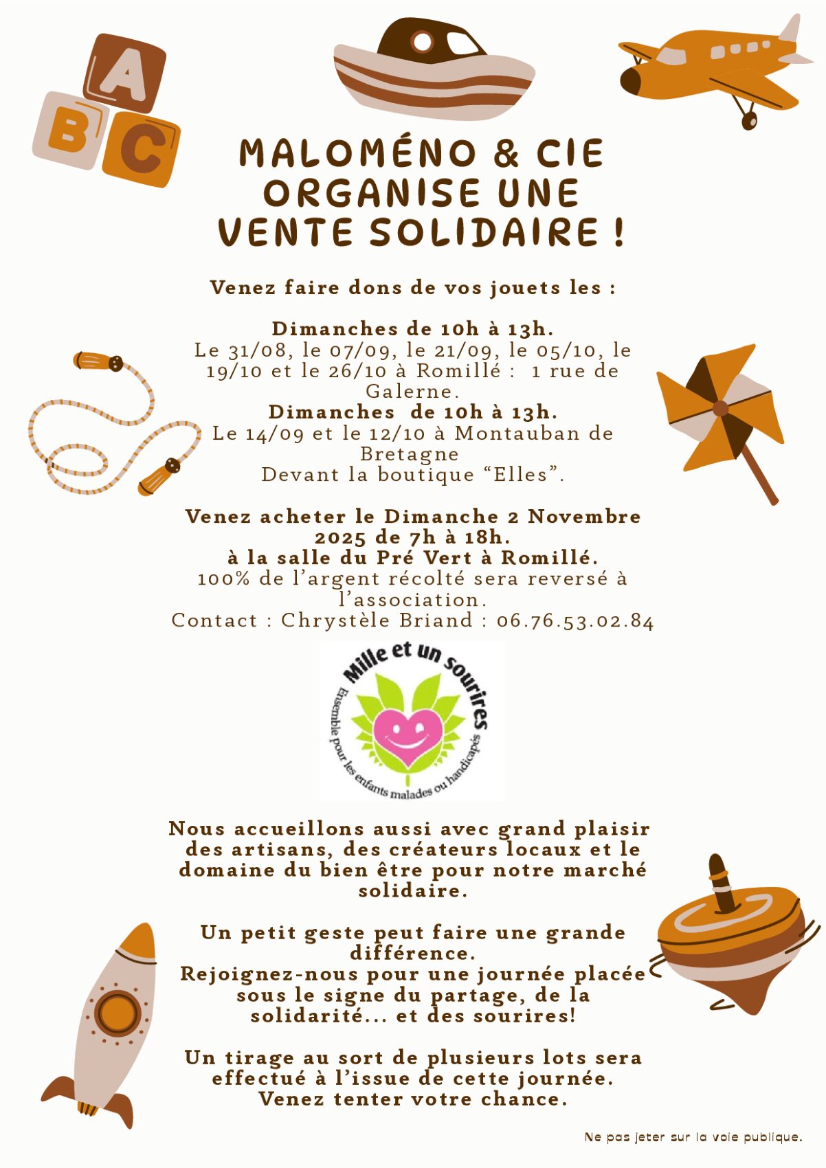 - Dépôt des dons de jouets : le 12 octobre devant la boutique "Elle" à Montauban de Bretagne.