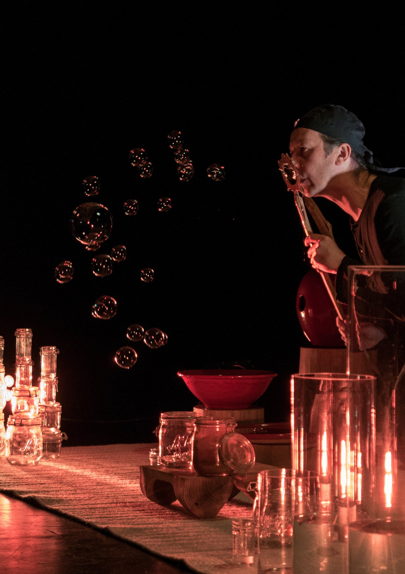 Manger, boire, respirer, souffler, parler, siffler, embrasser, grimacer, rigoler, chanter... C’est fou tout ce qu’on peut faire avec la bouche ! Avec Mokofina, Kristof Hiriart expérimente, cherche, façonne et montre aux jeunes spectateurs le potentiel musical de cet organe. Dans un décor aux lumières chaudes, l’artiste, entouré d’accessoires, nous entraîne dans un voyage sonore étonnant et montre, qu’au fond, chacun d’entre nous possède une âme de musicien.