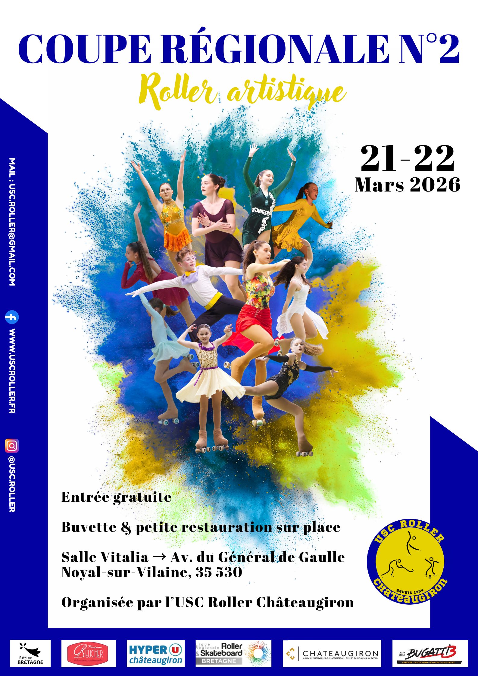 L’USC Roller Châteaugiron organise la Coupe régionale N°2 de Roller artistique les 21 et 22 mars à la salle Vitalia de Noyal-sur-vilaine. Les patineurs bretons de niveau national de freeskating et de danse vont concourir. Venez les encourager !