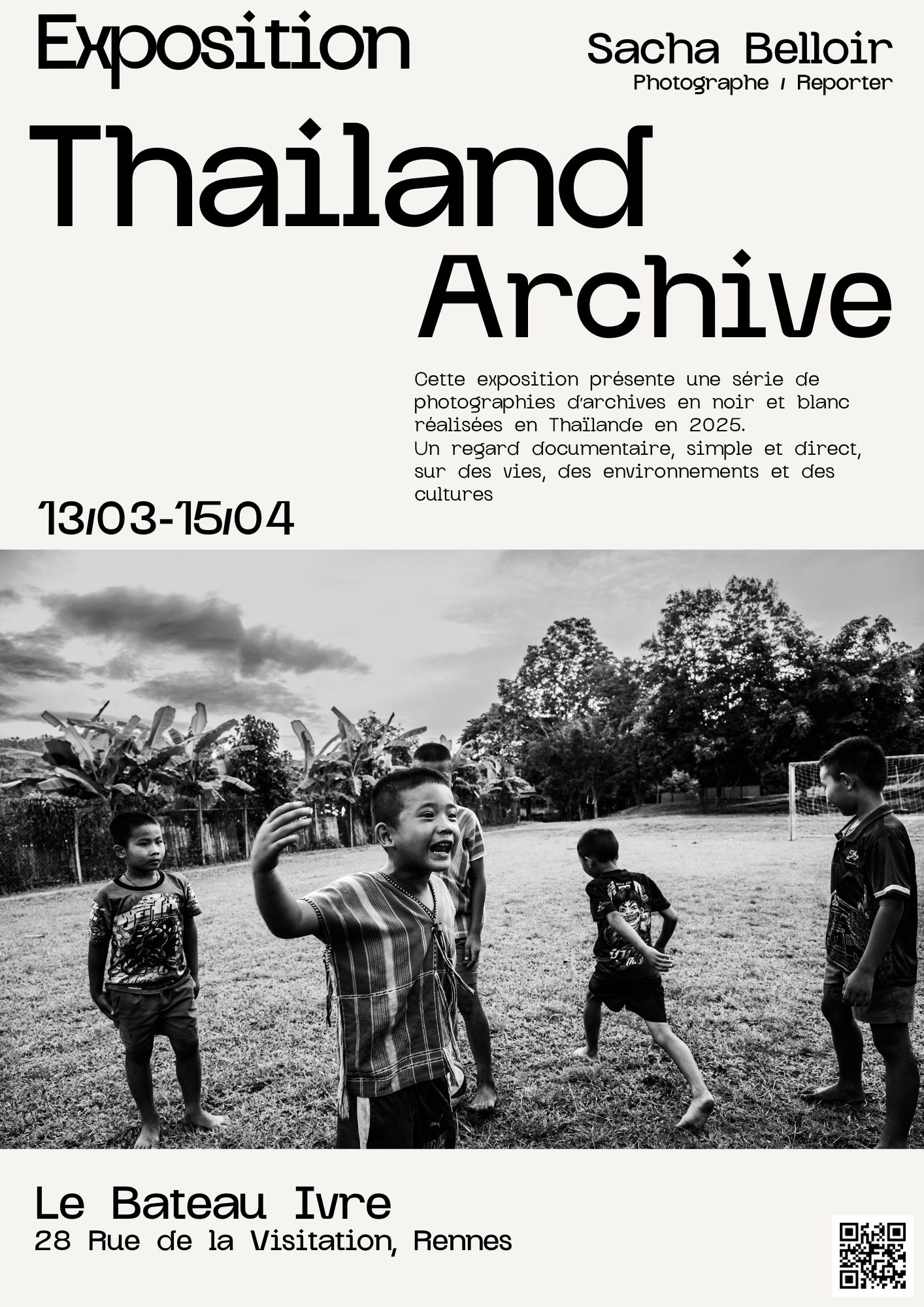 Cette exposition présente une série de photographies d'archives en noir et blanc réalisées en Thaïlande en 2025 par Sacha Belloir., photographe et reporter.