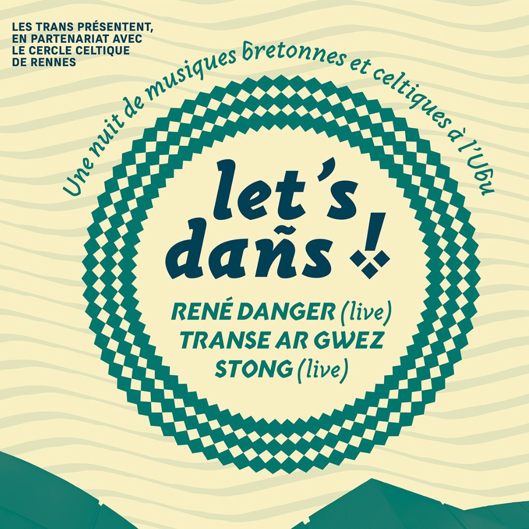 Funk, rock, disco, hip hop, tropicale, reggaeton… Depuis 2017, les fameuses soirées à thème Let’s Dance se sont imposées comme des nuits dansantes incontournables de l’Ubu. Ce nouvel opus vous entraîne dans une grande ronde autour d’une relecture actuelle de traditions bretonnes et celtiques dansantes. Dans ses concerts, René Danger superpose sa voix aux synthétiseurs modulaires et à sa Gameboy, pour un mélange entre gwerzoù (complaintes) bretonnes et breakbeat, mélodies traditionnelles et sonorités dub ou electro. Un style que l’on pourrait qualifier de chip trad ou gwerz dub.