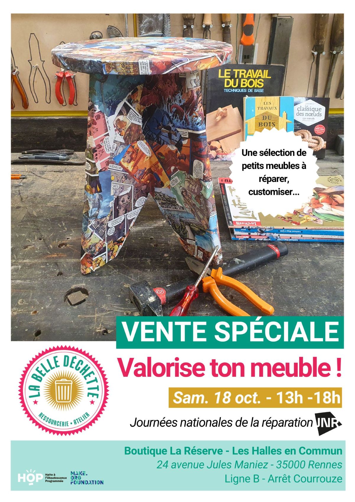 À l’occasion des Journées Nationales de la Réparation, La Belle Déchette met les petits outils dans les grands et vous propose trois temps forts pour valoriser, transformer et prolonger la vie de vos objets préférés !